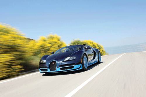 The illuminated diodes blink up at me from their carbon-fiber dashboard encasement. Mileage. Speed. Performance. To one side sits the power gauge, its range like a prophecy carved in fiery letters: an impossible but unwavering 1,200 horsepower. As I take in the sleekness of the interior, the leather so supple it seems almost alive, the words “fastest production roadster in the world” flit through my head. I’m encased in a $2 million torpedo, and the top is down.  Following the success of the 16.4 Super Sport, it didn’t take long for Bugatti to up its ante with a new addition to the Veyron line: an open-top version of the Super that could nevertheless deliver the Grand Sport’s power and speeds.  The novelty alone was enough to set the fan forums buzzing — an open-top car capable of 410 kilometers an hour? The idea was like a gauntlet thrown in the