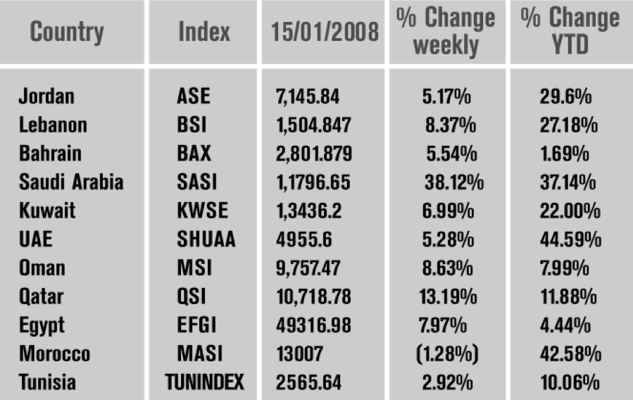 Be that is it may, though the Beirut exchange wobbled nervously in 2007 due to the country’s chronic political crisis, the BSE’s landmark BLOM Stock Index still managed a 26% annual rise during the year. Although not as strong as some other Arab bourses, the achievement was quite good, considering lagging Lebanese growth. The beginning of 2008 on the other hand saw shares zooming upward on news of an Arab reconciliation initiative to bring feuding Lebanese factions together, but the next months could still mostly be ones of economic instability — mirrored by an edgy bourse. Still, the Beirut bourse and most other regional exchanges outperformed many of their big brothers in the West, though not the price of oil or gold.