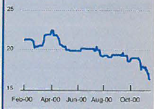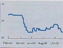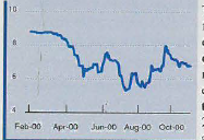 by 34% from August 1999 to August 2000, and telecom-equipment